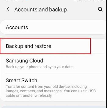 Click on Backup & Restore and then go to Google Account