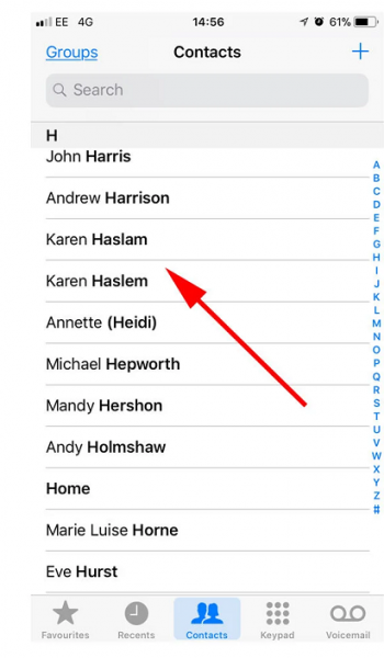 Now, tap the contact that you want to delete.
