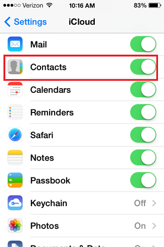 Now, turn the switch next to Contacts to off.