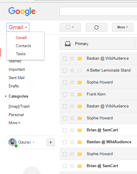 If you’re on a computer, click on the Gmail text and there will be an option to select ‘Contacts’. This will then take you to the contacts app.