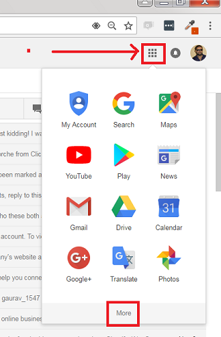 3. Next to your profile picture you will see a square made up of smaller 3×3 squares. Click on this. It will show all the available Google applications.