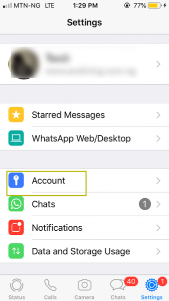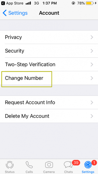 Tap on “Account” and select “Change Number”.