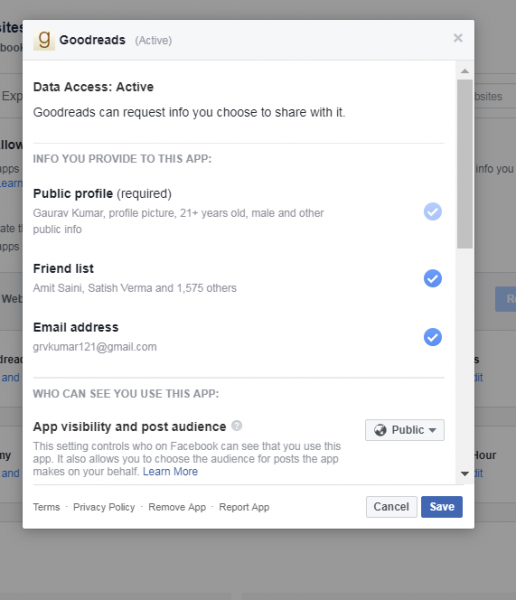 However, it is possible to limit the information that is shared with these sites, either initially when you authorize access, or later on in your Facebook settings: