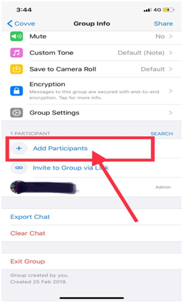 To add a participant on a WhatsApp group using an iPhone