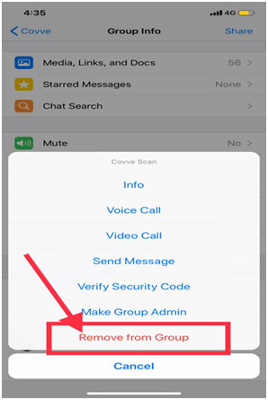 Step 3: Tap Remove from Group (as shown in image 4) > Remove.