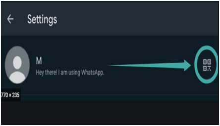 - Open WhatsApp settings, click on the QR icon next to your name