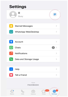 Step 1 – Open WhatsApp Settings and tap on the QR icon.