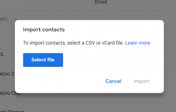 Importing Contacts CSV file to Gmail