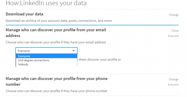 - Who can find your profile by email or phone number.