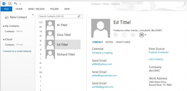In Outlook, go to the contact’s folder and select the contact you want to create a vCard for (yourself). Create a contact with your own detail and fill put all the information like website URL, Job Title etc.