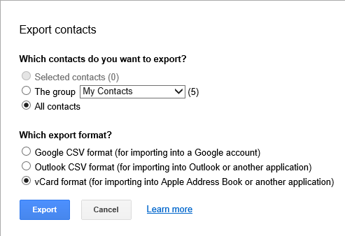 Export your contact that you have created earlier as a vCard file and save the contact in your computer.