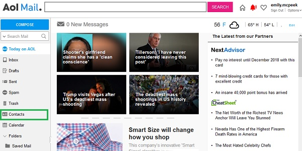 To delete contacts in AOL Mail, follow the instructions listed below: