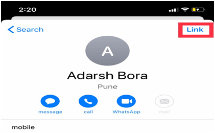 Step 6: Tap on “link contacts..”  and you’ll be taken back to your list of contacts. Next, you need to choose the name that you want to merge with the one you’re editing. Tap on it to open the card, then in the upper-righthand corner tap on the Link option (as shown in image 6), followed by Done.