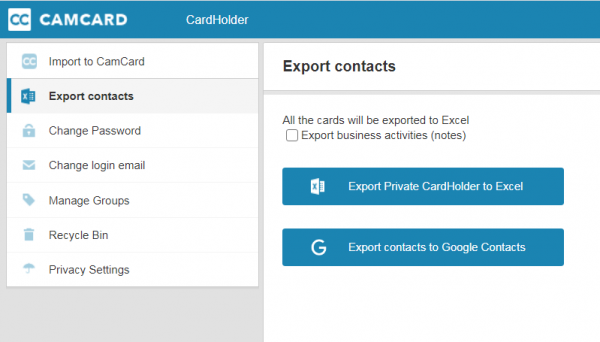 How to export CamCard to Excel