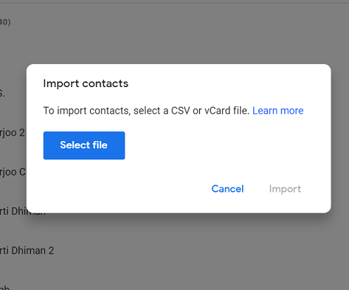 Next, to get these contacts you have to import that CSV file in your Gmail account.