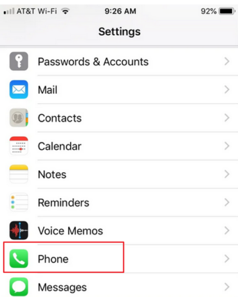 Step 2. Ignore the other general settings options and choose the phone icon.