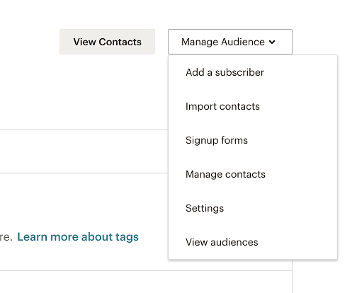 Now, access the drop-down under the Manage Audience tab and select Import Contacts.