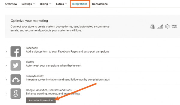 After you’ve signed in, click on Grant Access to authorize access and then return to your Mailchimp account.