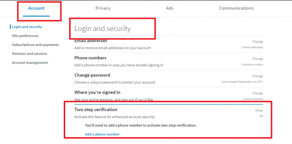 It is easy to set up two step verification on LinkedIn. You will need to login on a desktop or mobile browser (not the app).