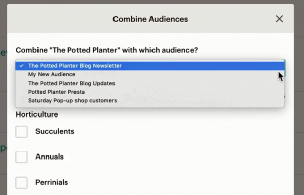 Now, in the pop-up modal, Click to open the drop-down menu and choose your Master Audience, the one who your New Audience gets merged with.