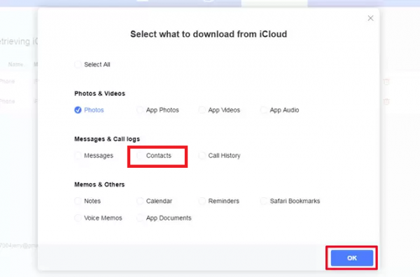 Recover lost contacts from Your iCloud Backup File