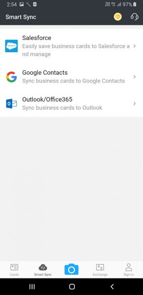Open the CamCard app on your mobile and click on the SmartSync option on the app.