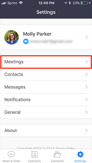 First off, if log in to your Zoom account from your mobile phone and navigate to Settings.