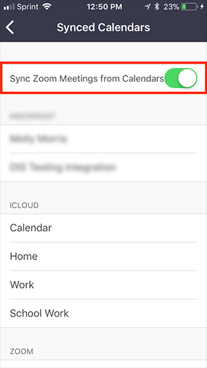 For example, upon clicking on Meetings, you can click on the option Synced Calendars and then turn the Sync Zoom Meetings from Calendars on, which enables syncing immediately.