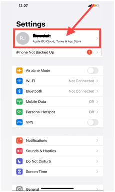 Step 4 – Tap on your Apple ID’s profile part (as shown in image 2)