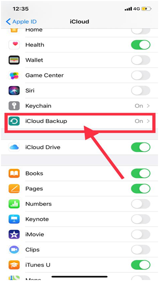 Step 2 – Tap iCloud Backup (as shown below in image 5)