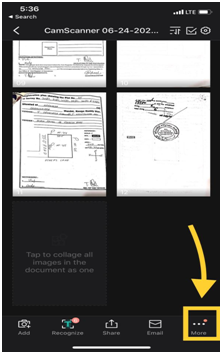 Follow the steps mentioned below to transfer documents from CamScanner to an alternate applications :