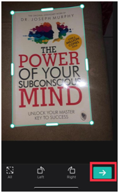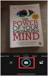 3. Line up the edges of the pages with the camera frame on your phone. Press the camera icon, to take the picture.