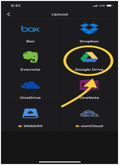 9. The upload option will lead to another drop down. Select “Google drive” (as shown in Image 7)from the drop down list.