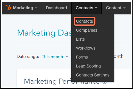 2. Once you’ve set up your .csv file, open Hubspot and go to ‘Contacts’. Click on Import.