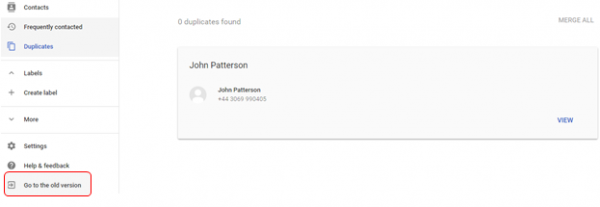 1. Go to the old version of Google Contacts, by clicking on Go to the old version on the left hand side bar.