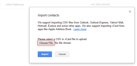 3. A dialog box will pop up, choose a .CSV file to upload.