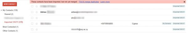 If the import has duplicates, you can merge them by clicking on Find & Merge duplicates on the red top bar .