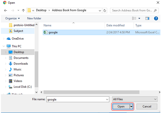 4. Head over to the .csv file that you have saved on your personal computer and click on Open.
