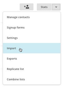 2. On the Lists page, select the list you want to work with and then choose ‘Import’.