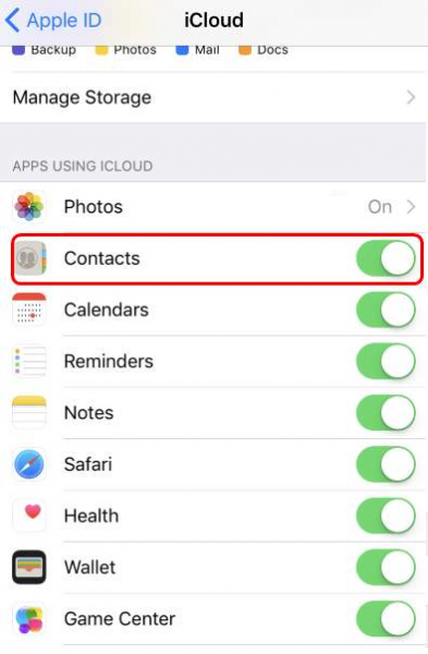 Method 2: Disable Contacts in iCloud and Turn on again