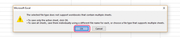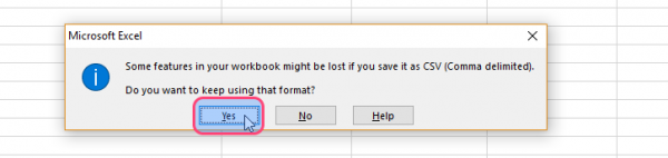 To do this press File and Save As and choose “CSV (comma delimited)” type