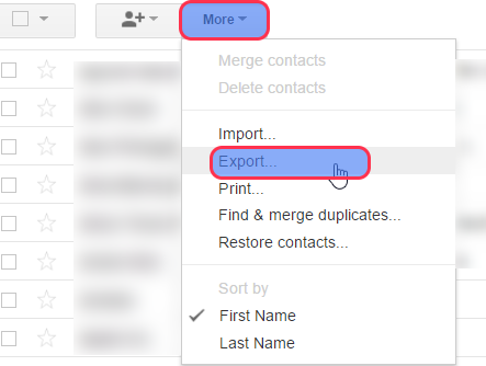 Step 3: Now you are on your contact page, click on “More” and then “Export”, to export your contact information from Gmail.