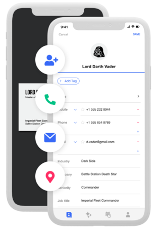 Covve Scan is a business card scanner that helps digitize your paper business cards and saves them as contacts on your phone. It uses Artificial intelligence (AI) technology to scan business cards and store client details in a centralized database. It is also the most accurate AI-powered business card scanner out there!